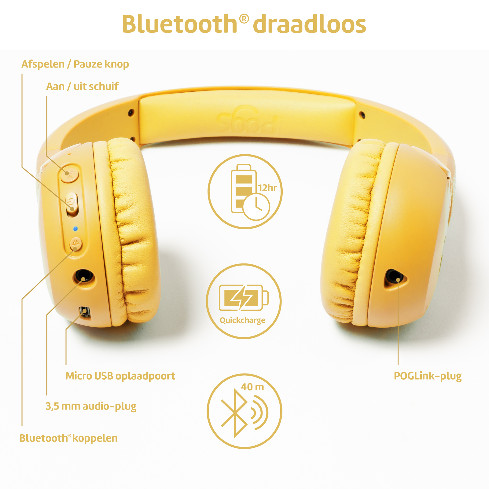 - POGS draadloze koptelefoon 'The Gecko'.