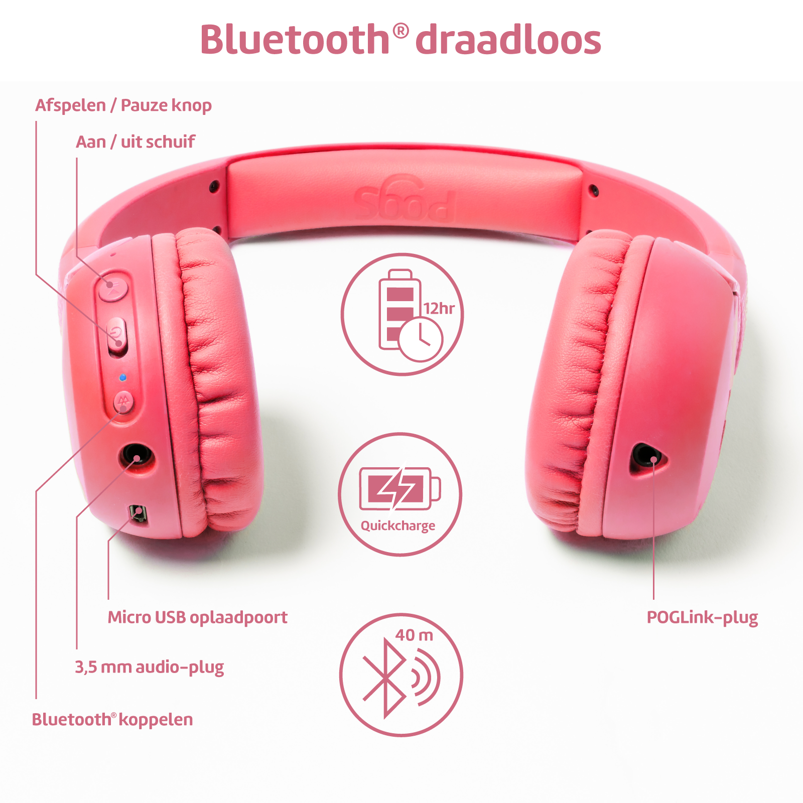 - POGS draadloze koptelefoon 'The Gecko'.