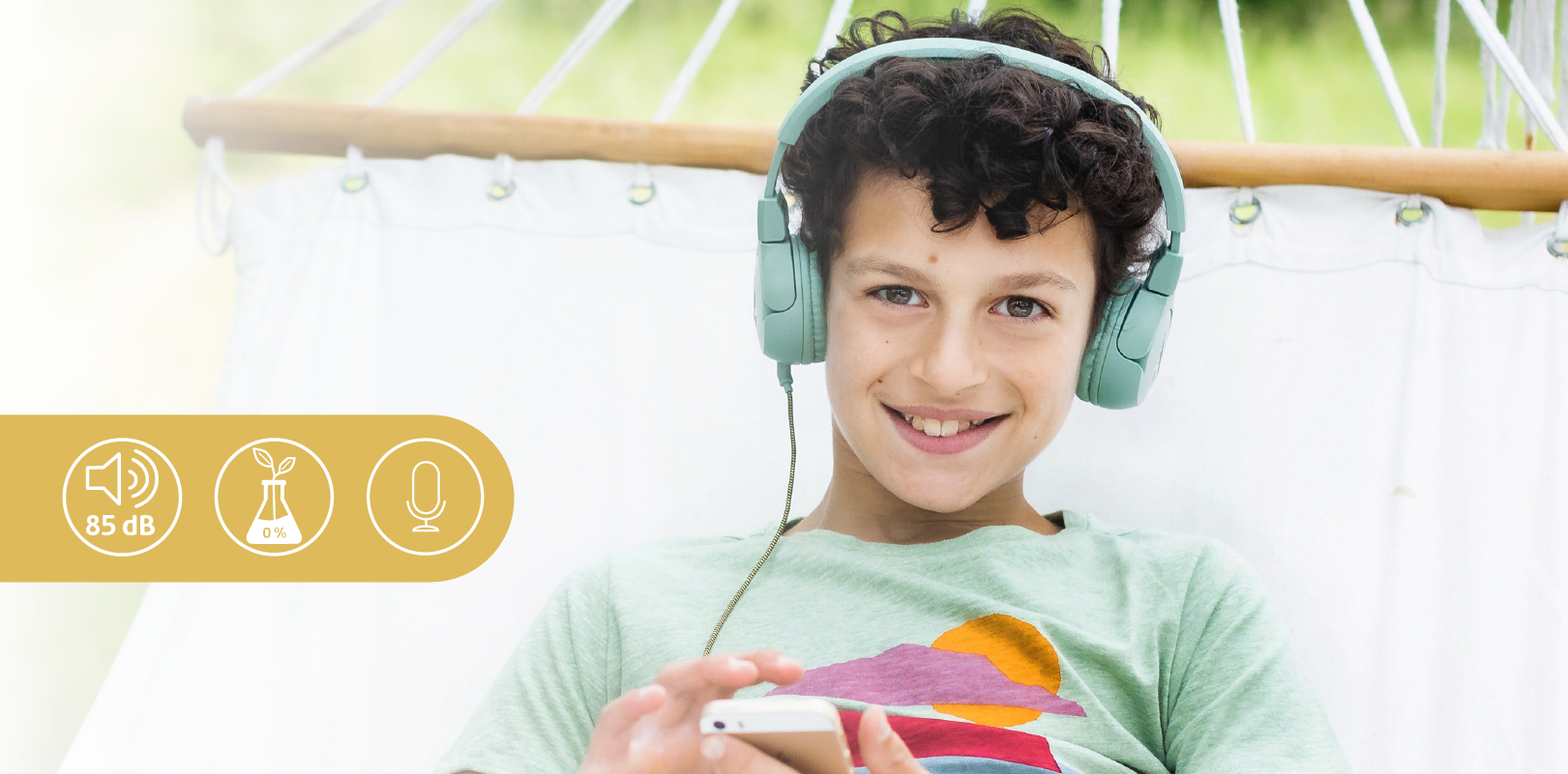niet-giftige en hypoallergene materialen.Veilig luisteren dankzij de geïntegreerde POGS-Safe volumebegrenzer in de audio kabel met microfoon. Gemaakt van niet-giftige en hypoallergene materialen. -